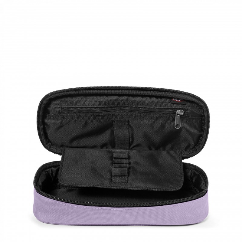 Estojo Eastpak Oval Single black ref. EK000717.5V8 na cor lavanda. Compartimento principal com fecho para manter os objectos mais pequenos em segurança. Organizador interior com prateleira para canetas. Altura: 5 cm Largura: 22 cm Profundidade: 9 cm Peso: 140g Garantia: 2 anos Material: poliamida
