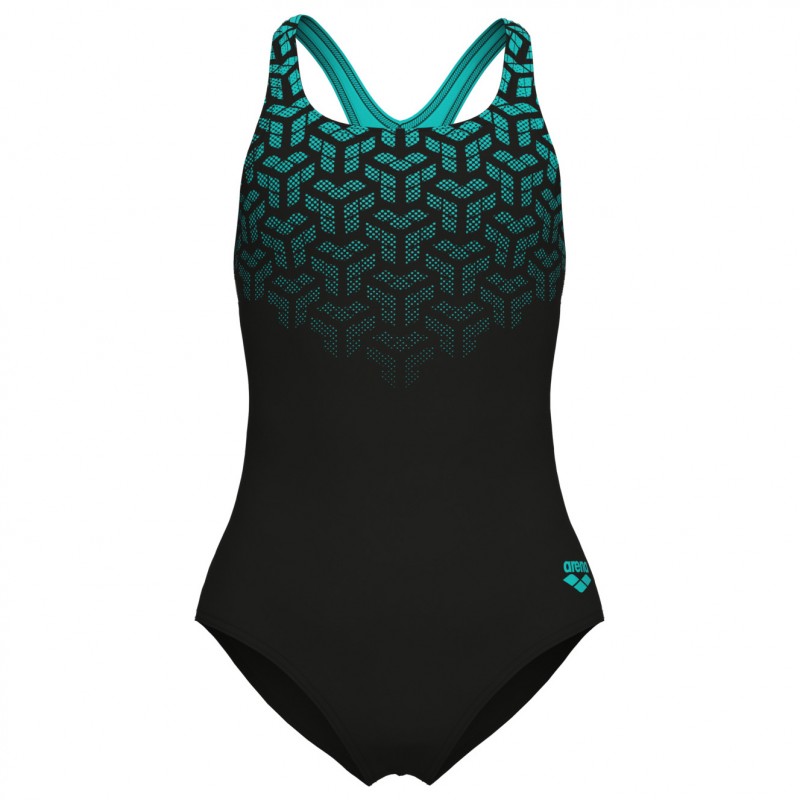 MaxFit Eco - 80% de poliamida reciclada; 20% de elastano. Feito para resistir ao cloro e proteger a pele dos raios UV