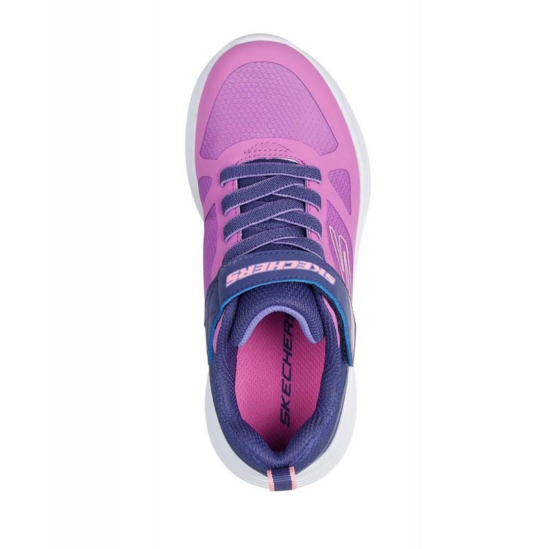 Sapatilha Skechers Dyna lite Tracing Tracks ref. 303854N/PRBL em rosa para criança. Parte superior em malha leve. Atacador em elástico para maior facilidade ao calçar e descalçar. Logótipo lateral. Fecho em velcro para ajuste preciso com logótipo Skechers. Palmilha acolchoada confortável.