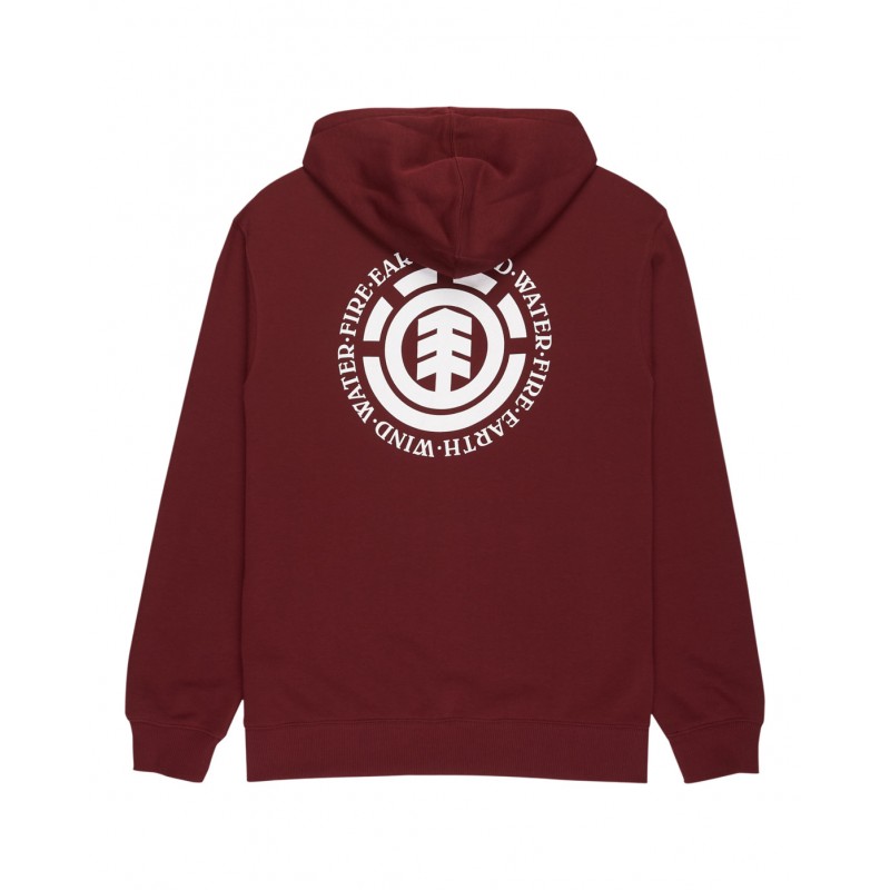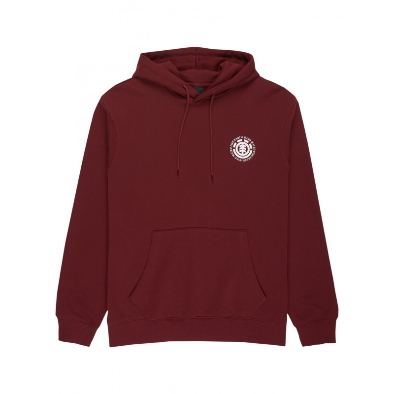 Sweat Element Seal BP PO ref. ELYSF00295.RSS0 em bordeaux para homem. Pequeno Logótipo estampado no peito e em grande nas costas. De corte regular e capuz. Bolso canguru. 20% poliéster reciclado, 55% algodão, 25% algodão reciclado [280 g/m2]
