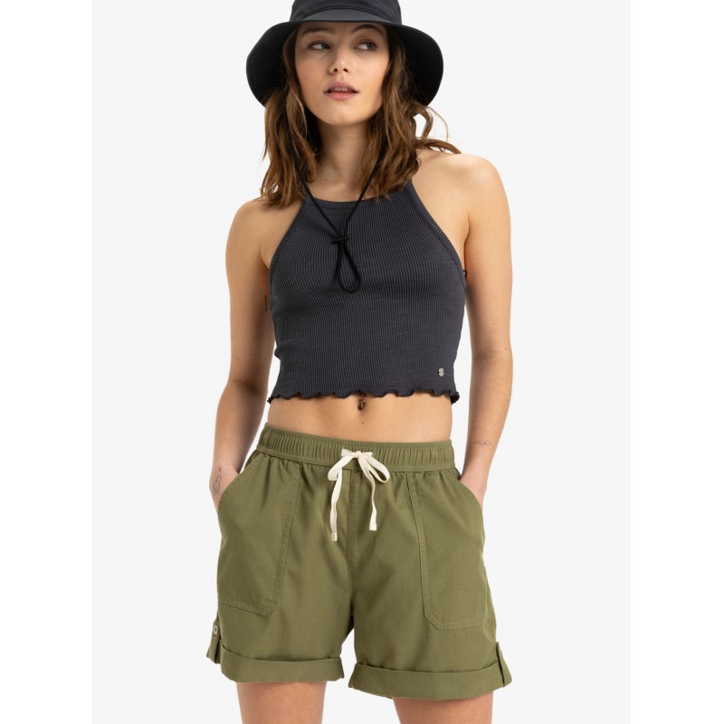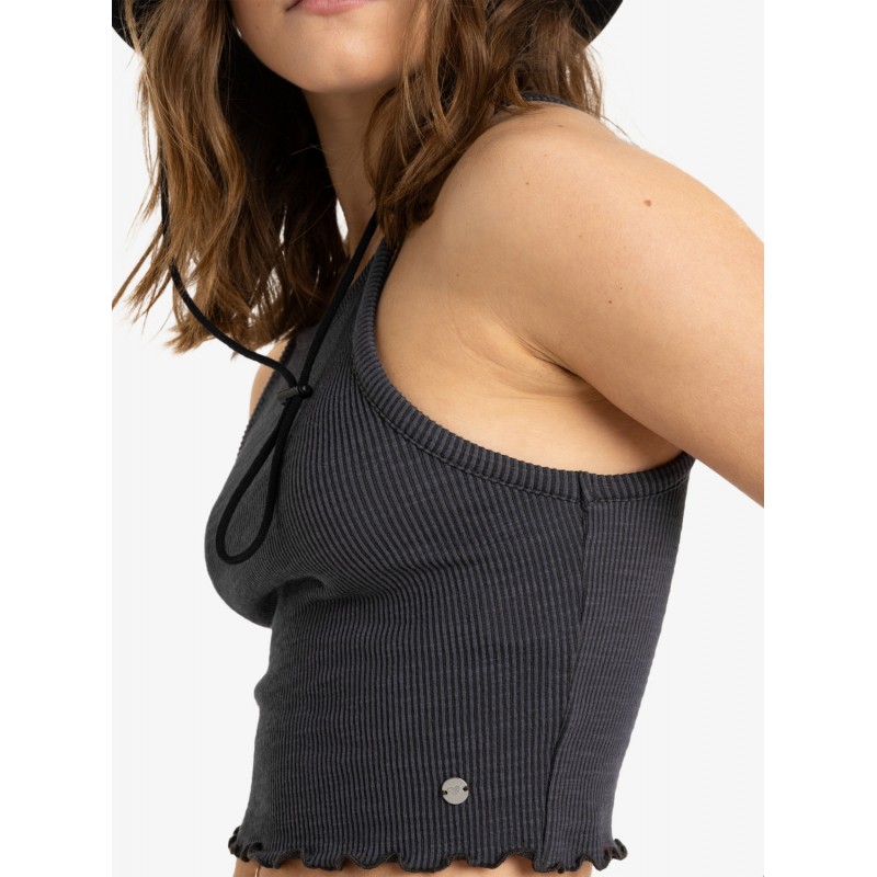 Top Roxy As I Am ref. ERJKT04278.KTA0 em cinzento para senhora. Feito em tecido canelado, de corte justo e cropped. Placa de metal com logótipo. 68% algodão, 28% poliéster, 4% elastano