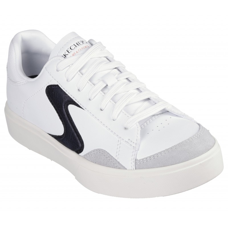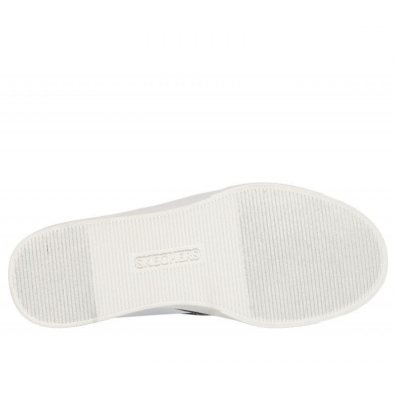 Sapatilha Skechers Eden Lx Slick Talk ref. 185190/WBK em branco para senhora. Um estilo clássico que combina conforto e versatilidade. Feitas em cabedal de duraleather com sobreposições de camurça e uma palmilha Skechers Air-Cooled Memory Foam® acolchoada.