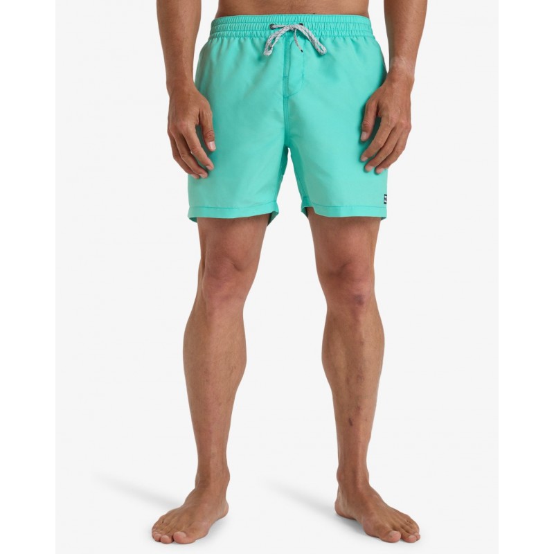 Calção Praia Billabong All Day ref. EBYJV00134.GEP0 em verde para homem. Proporciona conforto durante todo o dia com um visual casual para a versatilidade da rua ou para os dias na praia. Tecido de suede/camurça suave de secagem rápida. Cintura elástica com cordão. Etiqueta na perna esquerda. Bolsos laterais. 100% poliéster reciclado