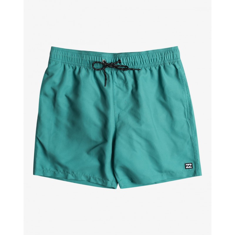 Calção Praia Billabong All Day ref. EBYJV00134.GMT0 em verde para homem. Proporciona conforto durante todo o dia com um visual casual para a versatilidade da rua ou para os dias na praia. Tecido de suede/camurça suave de secagem rápida. Cintura elástica com cordão. Etiqueta na perna esquerda. Bolsos laterais. 100% poliéster