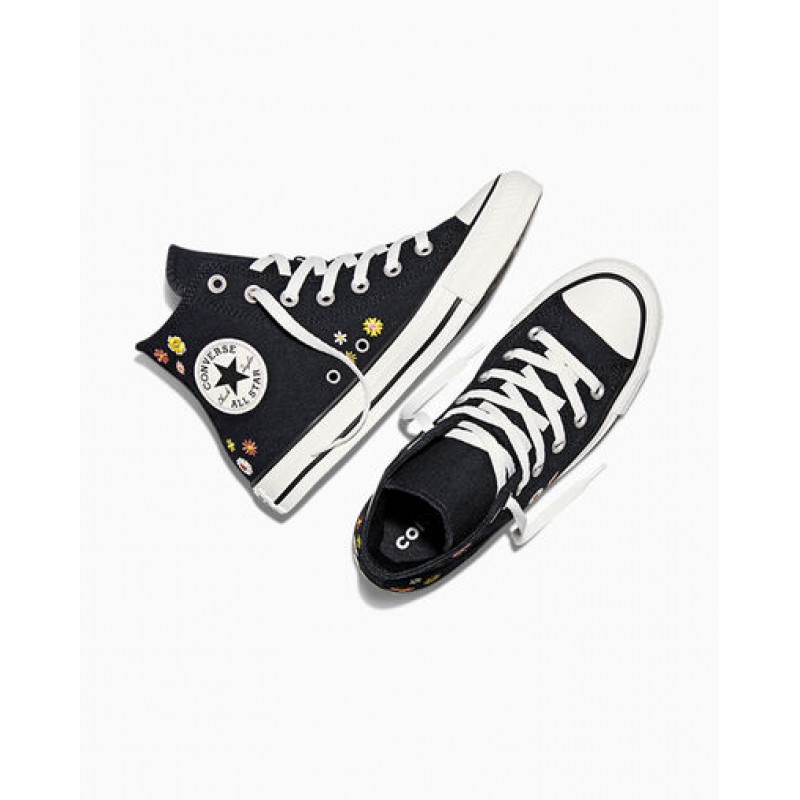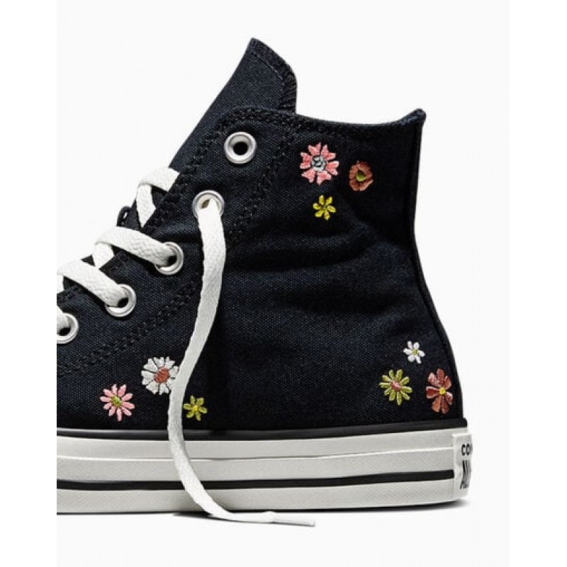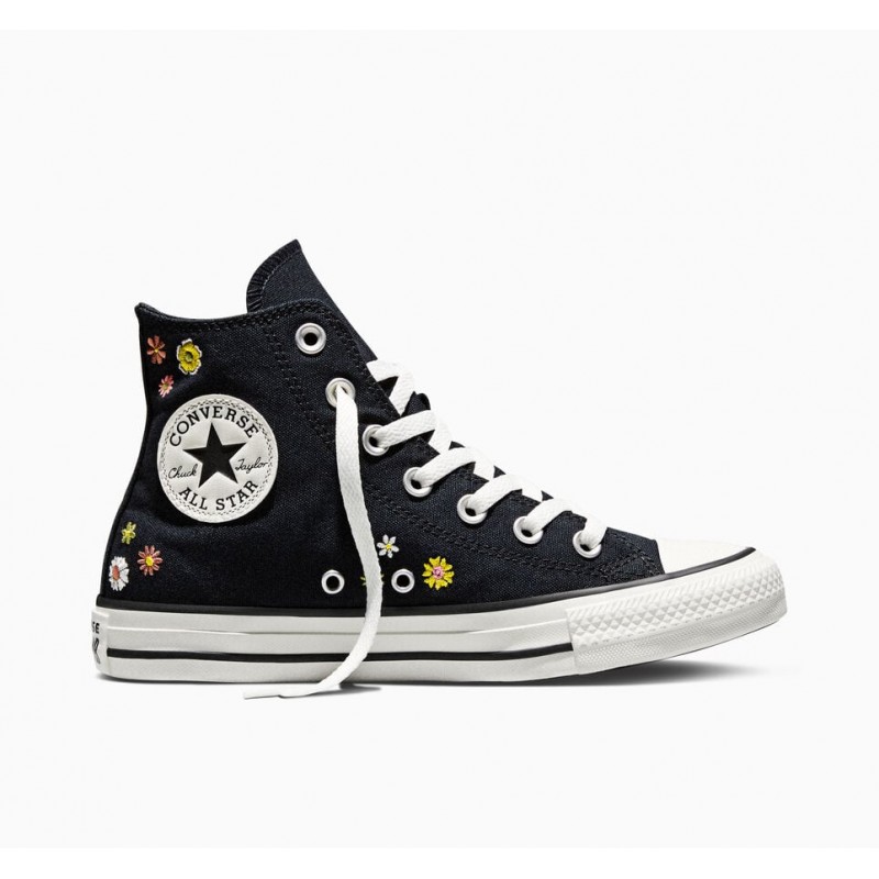 Bota Converse All Star Hi, ref. A16902C em preto/flores.