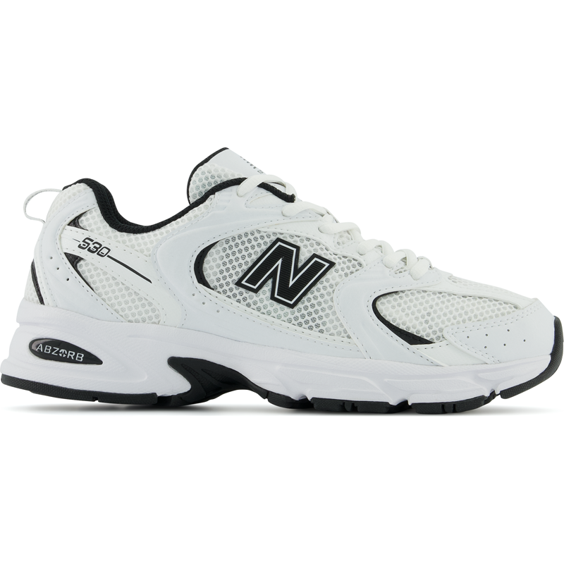 Sapatilha New Balance ref. MR530EWB em branco para senhora. Os ténis 530 são uma nova abordagem aos clássicos ténis de corrida. Sola intermédia ABZORB absorve o impacto através de uma combinação de amortecimento e de resistência à compressão Construção em pele.