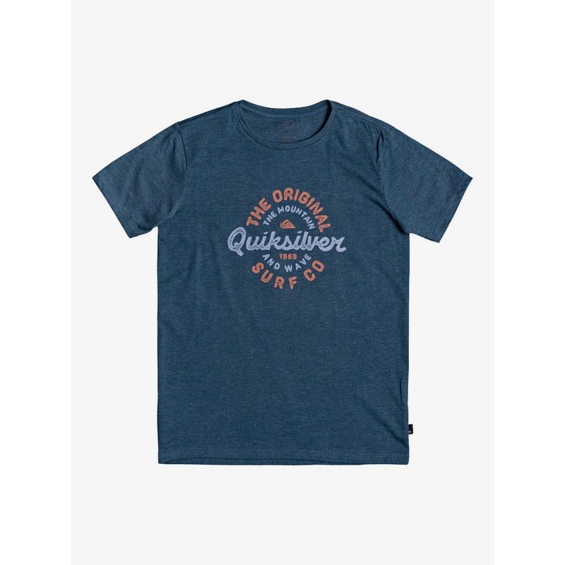 T-shirt Quiksilver Motorcycle Jr ref. EQBZT04152 BSMH em azul para criança Corte clássico confortável regular fit. Decote redondo. Estampado frontal. Etiqueta Quiksilver na manga. 58% algodão/48% Poliéster